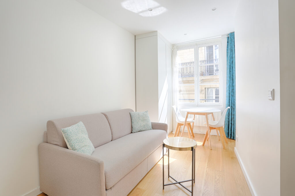 Rue des ciseaux / Eglise Saint Germain / Rue du four. Studio de 20m2, donnant sur rue calme, situé au 4ème étage sans ascenseur. Ce studio est équipée d’un canapé-lit pour 2 personnes et d’une grande fenêtre. Cet appartement est doté de nombreux rangements. Prestations de qualité, cuisine équipée, lave-linge , salle de douche, WC. Profitez d’un logement élégant et central.