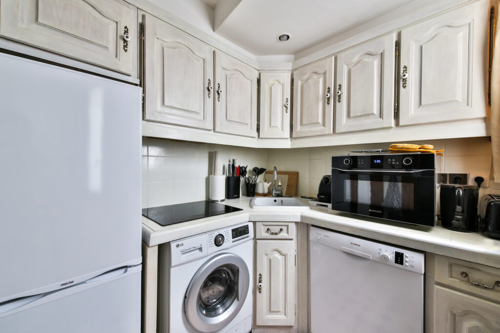 Ustensiles de cuisine, 1 réfrigérateur, 1 four standard, 1 cuisinière électrique, 1 grille-pain et 1 cafetière